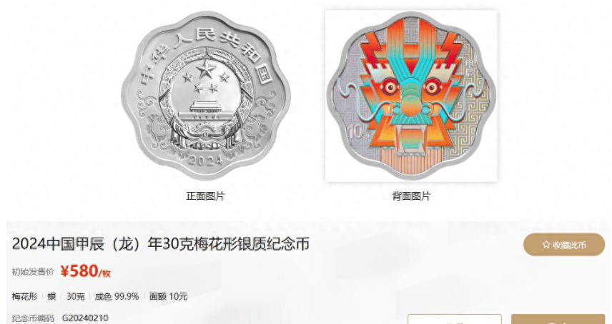 最近除了这枚心形银币,2024年龙年30克梅花形彩银龙币的价格近期出现了较大幅度的上涨,在5月初,其市场行情基本保持在450-480元左右。随后价格直接突破千元大关,5月中旬最新市场行情已到1600-1900元左右。